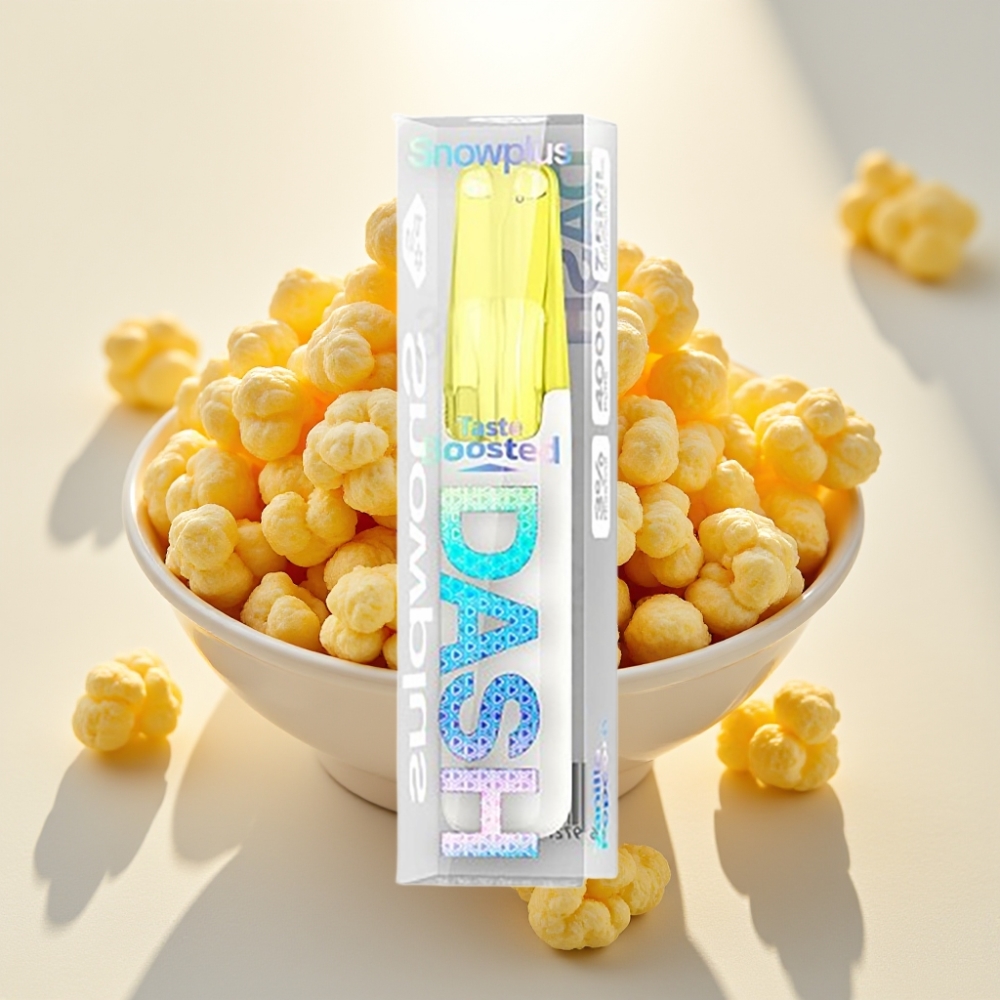 Snowplus Dash 4000 Pūfu Disposable ierīce – Vaniļas Popkorns, Keramikas Atomizers, 7.5 ml